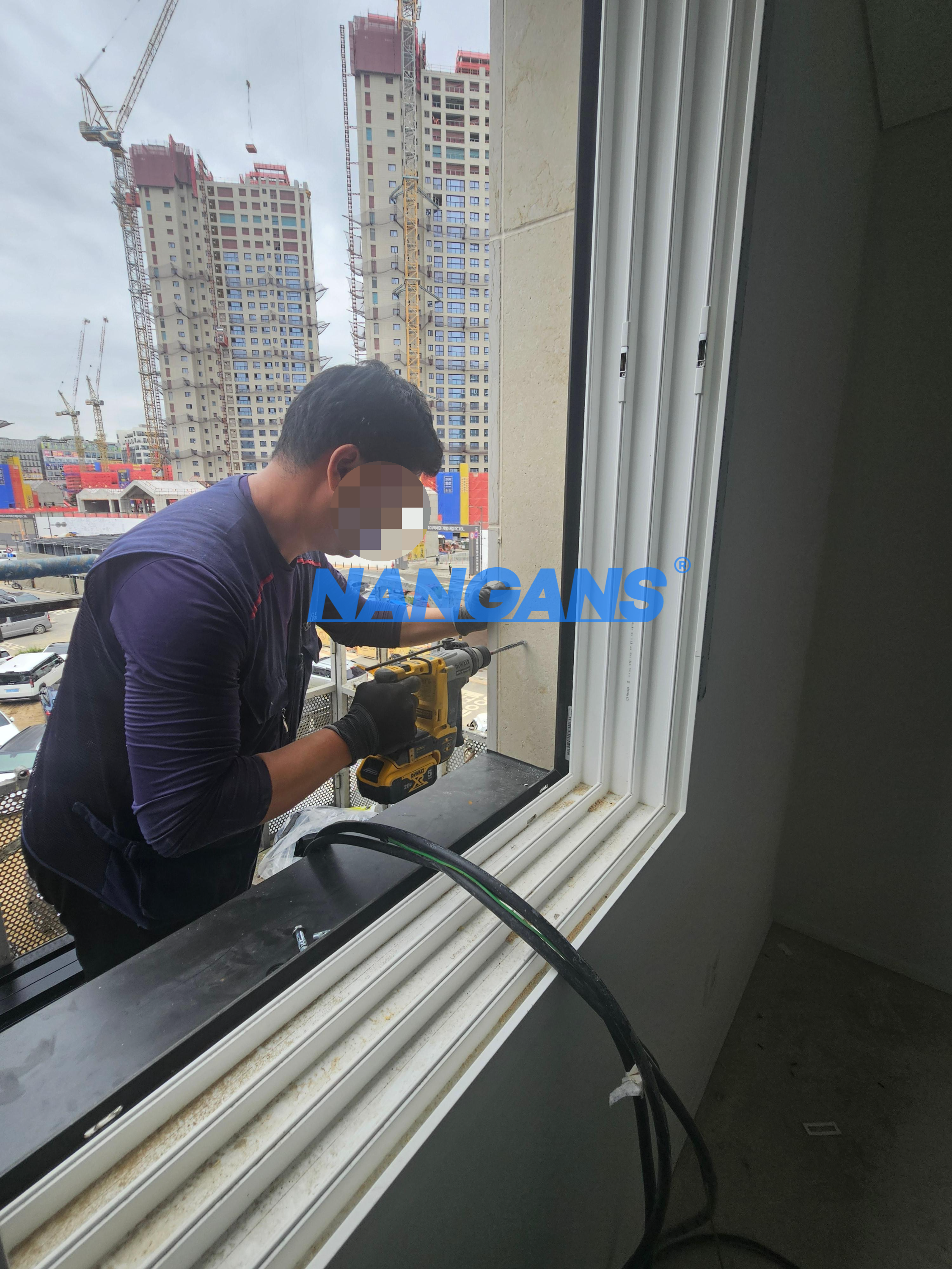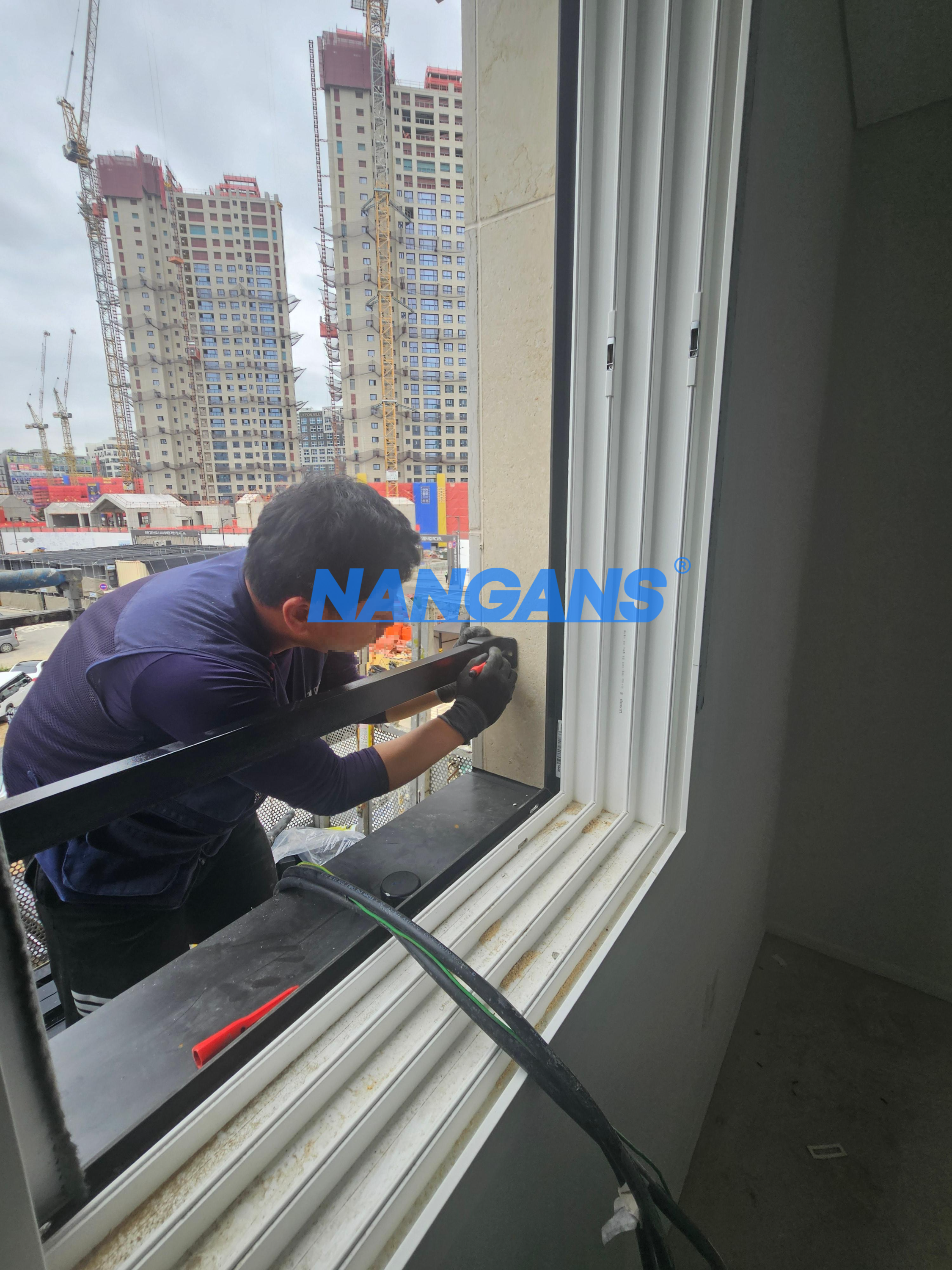 건물의 창문 틀 막벽에 맞게 시공을 진행합니다.