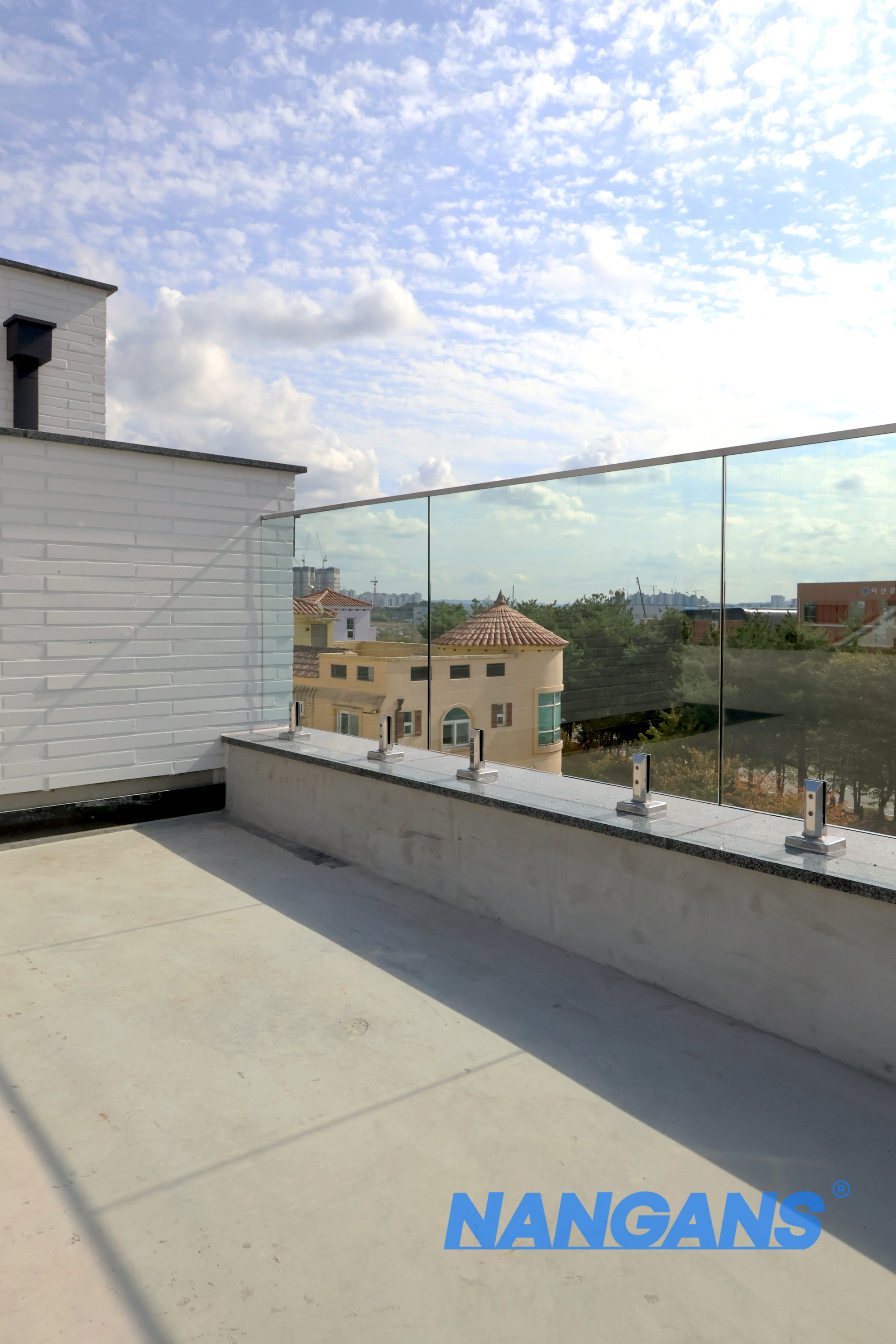 똑같은 방식으로 발코니 공간에도 튼튼한 유리 난간이 설치완료 되었습니다. 철재로 된 난간대와 비교해서 보신다면 훨씬 고급스러운 연출이 느껴지시죠? 유리난간만의 현대적인 디자인과 채광을 건물 내부로 받아들여주는 흡수력, 그리고 개방감까지 답답함 없는 공간 연출을 하시고 싶다면 로켓형 유리난간을 추천드립니다.